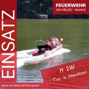 Mit dem Stichwort H H2W Tier in Gewässer-Notlage wurde die Rüstgruppe des Feuerwehrschwerpunktes um 11:05 Uhr zusammen mit der Ortsfeuerwehr Denstorf/Klein Gleidingen, der Fachgruppe Boot (Ortsfeuerwehr Sierße/Fürstenau und Wedtlenstedt) und einem Rettungswagen des ASB alarmiert.