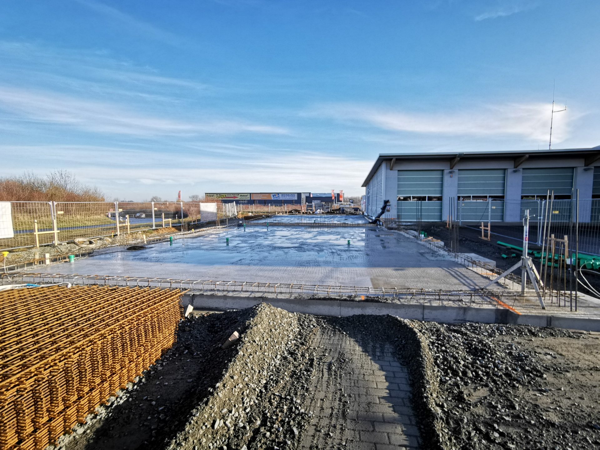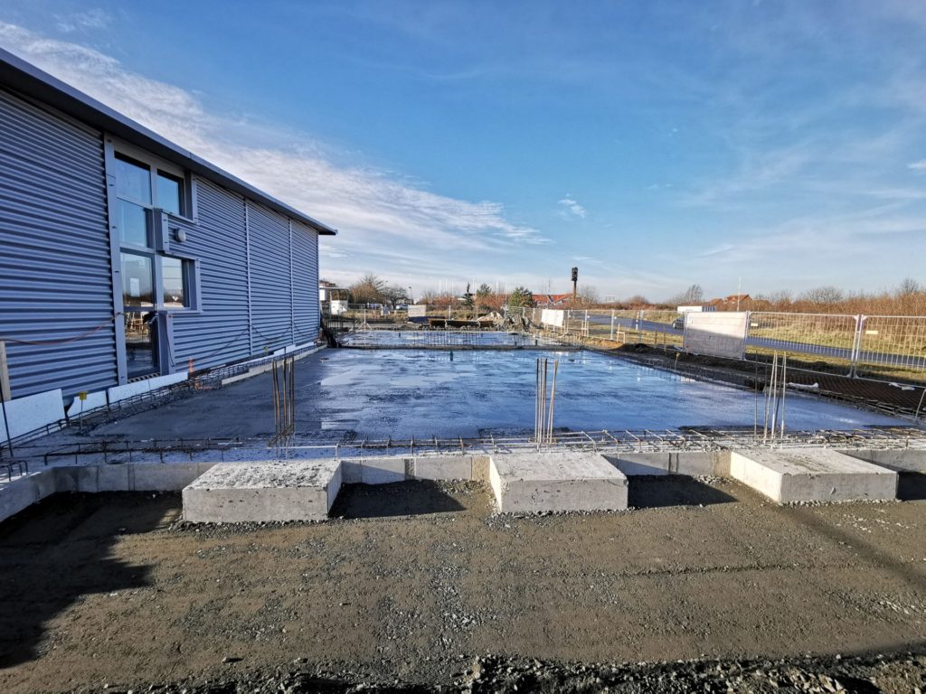 Im Anschluss an die Fundamente wurde die Bodenplatte erstellt. Mit dieser Maßnahme wurden die Betonarbeiten für den Rest des Jahres 2020 beendet.