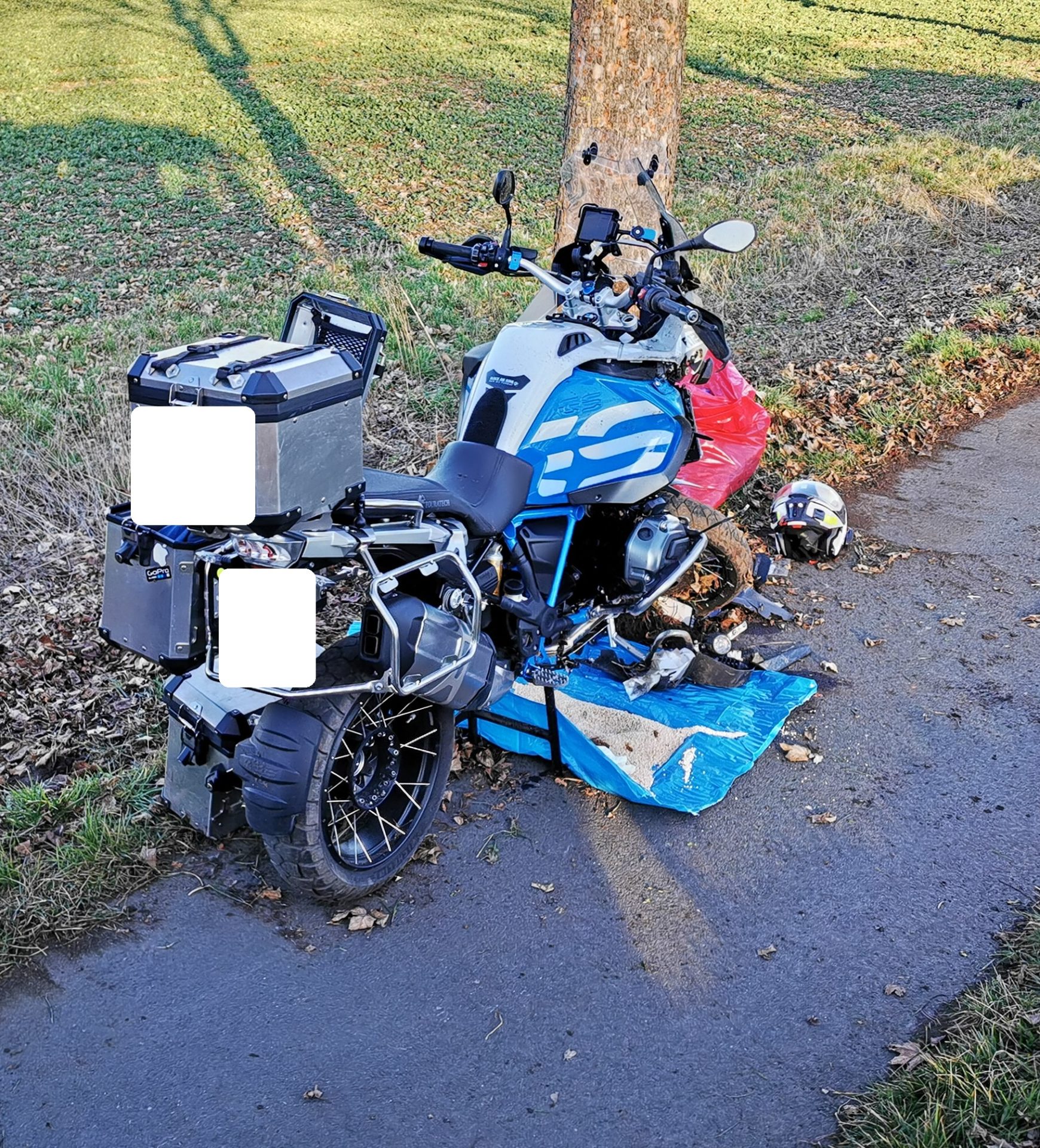 Durch die Einsatzkräfte der Feuerwehr wurde die Unfallstelle bis zum Eintreffen der Polizei abgesichert. Das Motorrad wurde mit „Manneskraft“ durch die Einsatzkräfte auf den Radweg gehoben. Dort wurde auslaufender Kraftstoff aufgefangen und mit Bindemittel gebunden. Da geringe Mengen Motoröl im Bereich des Grünstreifens ausgetreten waren, wurden die Bereich großflächig ausgehoben und der Aushub der fachgerechten Entsorgung zugeführt.