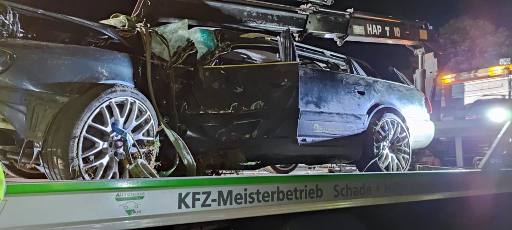 Schwere Verletzungen zog sich ein PKW-Fahrer bei einem Baumunfall auf der Bundesstraße 1 zwischen der Abzweigung nach Gr. Gleidingen und dem Raffturm zu. Offensichtlich war der Audi A6-Fahrer auf der Fahrbahn nach Braunschweig unterwegs, von dieser nach rechts abgekommen, über den Rad-/Fußweg gerutscht, um dann, nach einer Drehung mit der Fahrertür, also genau zwischen A- und B-Säule des Fahrzeuges an einem mächtigen Baum ungebremst „einzuschlagen“. Dabei wurde der Fußraum und der Fahrersitz so stark verformt, dass die Feuerwehr zur patientenschonenden Rettung des Fahrers, das Fahrzeugdach abschneiden musste.