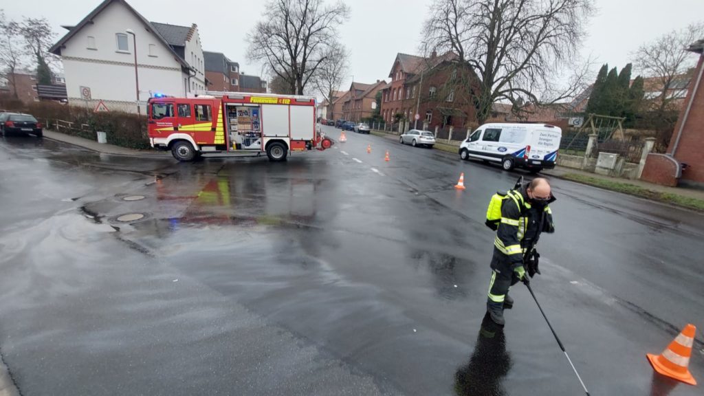 Wieder rückten die Einsatzkräfte mit ELW 1 und HLF 20/16 in die Hildesheimer Straße in Vechelde aus. Wie bereits am Tag zuvor, war die Hildesheimer Straße und die Straße Am Schützenplatz mit Öl- bzw. Kraftstoff verschmutzt.