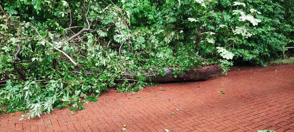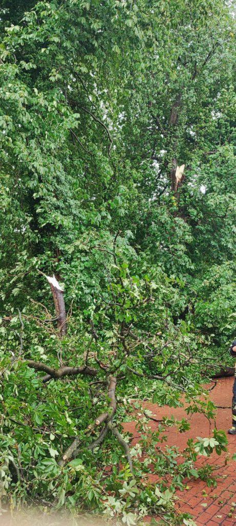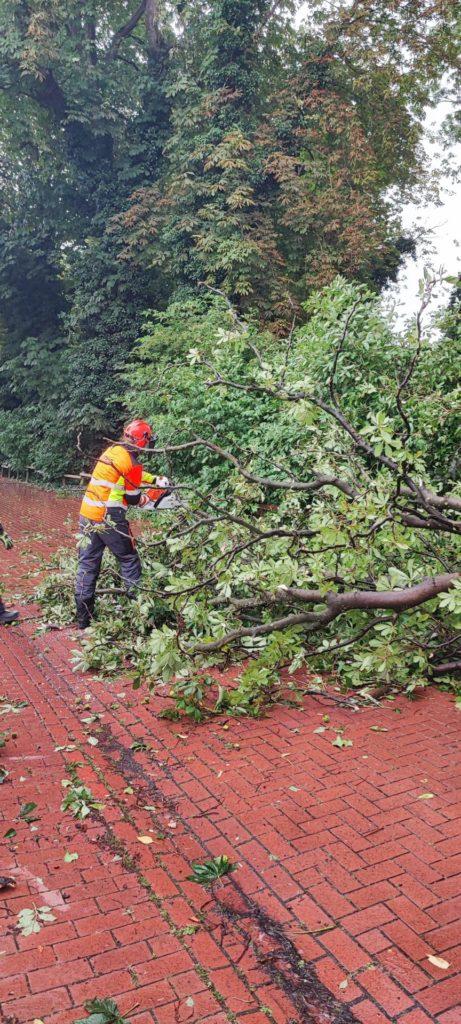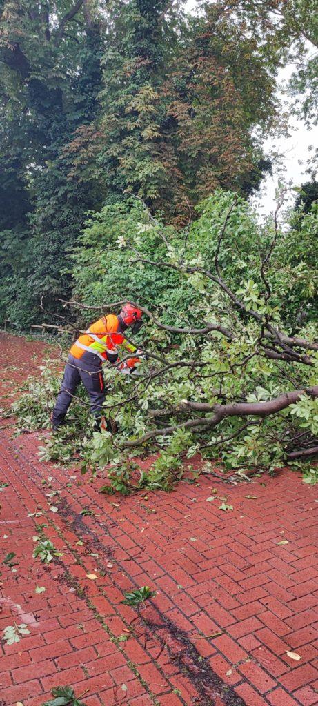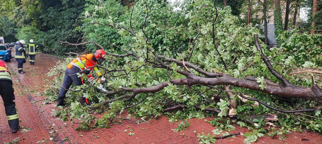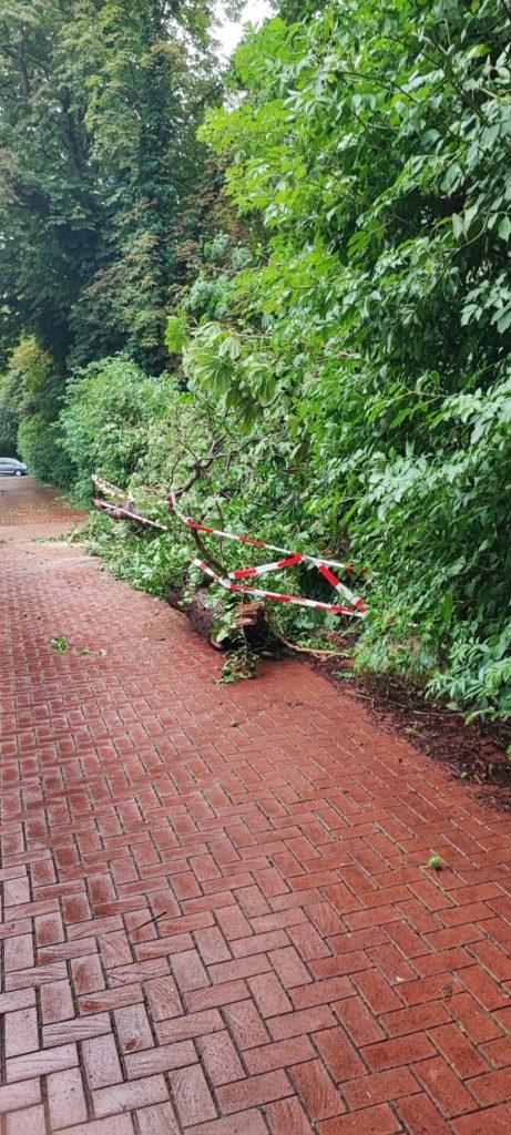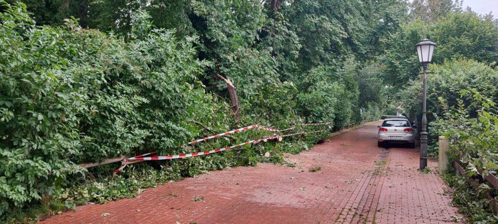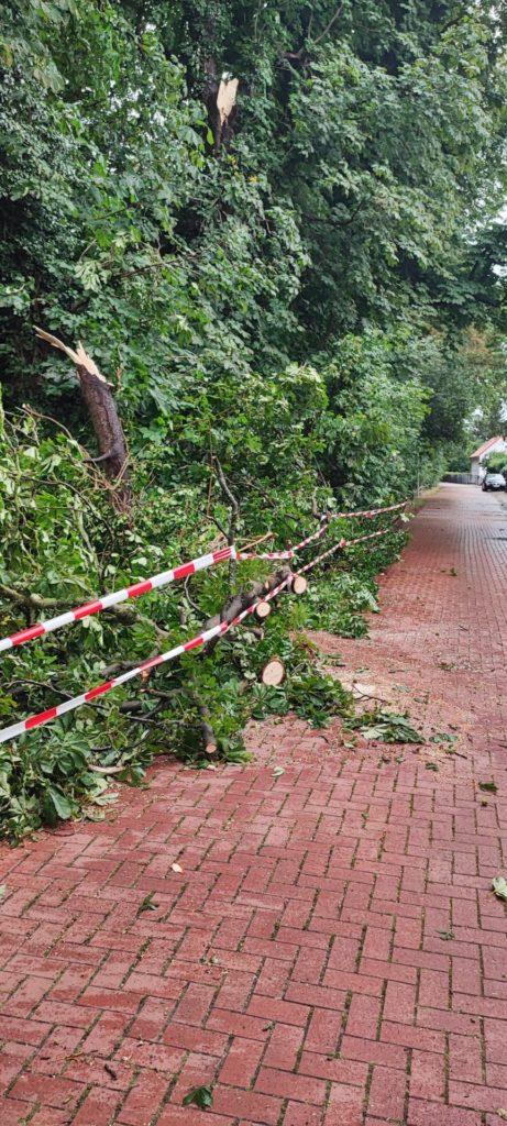 Vor Ort wurden mehrere dicke Äste vorgefunden, die aufgrund eines kurzen Gewittersturm aus den Bäumen abgebrochen sind. Diese wurden mit der Motorsäge zerkleinert und in einem benachbarten Garten abgelegt. Die Stämme am Straßenrand wurden gesichert, damit die Straße wieder befahrbar ist. Für die Entsorgung wurde die Gemeinde Vechelde informiert, die dies in der kommenden Woche erledigen wird.