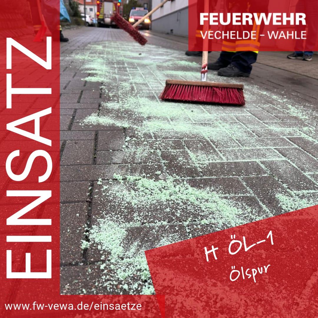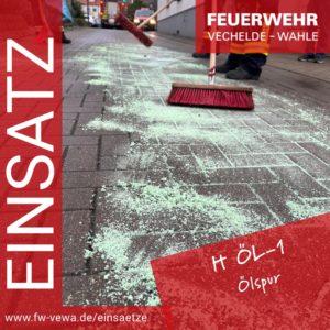 Erneut wurden wir am heutigen Tage um 10.49 Uhr zu einer Ölspur alarmiert. Auf dem Hof des Rathauses Vechelde konnte eine etwa 15 Meter lange Ölspur festgestellt werden. Auch hier wurde das Öl mittels Bindemittel gebunden, aufgenommen und fachgerecht entsorgt. Weiter wurde der Kreuzungsbereich der Hildesheimer Straße auf eventuelle Ölverschmutzungen kontrolliert. Dort konnte eine Verschmutzung aber nicht festgestellt werden.
