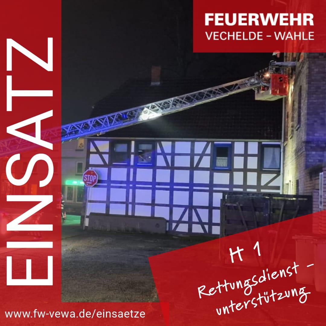 Am zweiten Weihnachtsfeiertag wurde die Drehleitergruppe des Feuerwehrschwerpunktes Vechelde/Wahle von der Leitstelle Braunschweig zu einer Unterstützung des Rettungsdienstes mit Drehleiter in die Hildesheimer Straße alarmiert. Wir rückten mit ELW1, HLF und DLK zur Einsatzstelle aus.