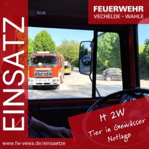 Der Feuerwehrschwerpunkt Vechelde-Wahle und die Ortsfeuerwehren Wedtlenstedt und Denstorf-Klein Gleidingen wurden am 11.05. um 16:40 Uhr durch die Integrierte Regionalleitstelle Braunschweig/Peine/Wolfenbüttel mit dem Stichwort H2W und dem Meldebild „Personen versuchen, Pferd zu retten“ alarmiert.