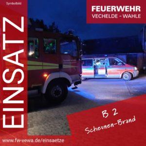 Am 21. September um 10:52 Uhr wurde die Drehleitergruppe des Feuerwehrschwerpunktes Vechelde/Wahle mit dem Stichwort „B2 – Scheunenbrand“ nach Bettmar alarmiert.