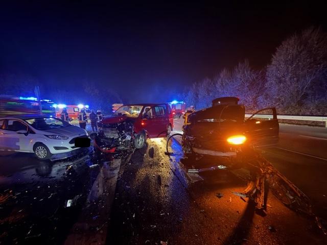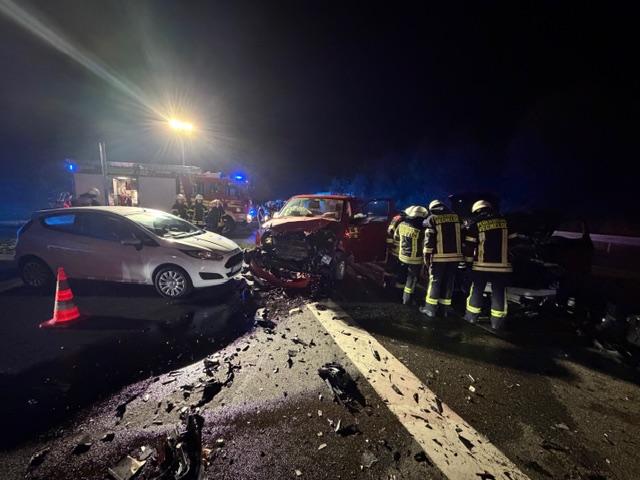 Sofort eilten Einsatzkräfte zu Fuß zur nahen Unfallstelle. Die Lage stellte sich rasch als Frontalzusammenstoß zweier Fahrzeuge heraus, ein drittes Fahrzeug war beteiligt. Keine Person war eingeklemmt, Betriebsflüssigkeiten liefen aus.