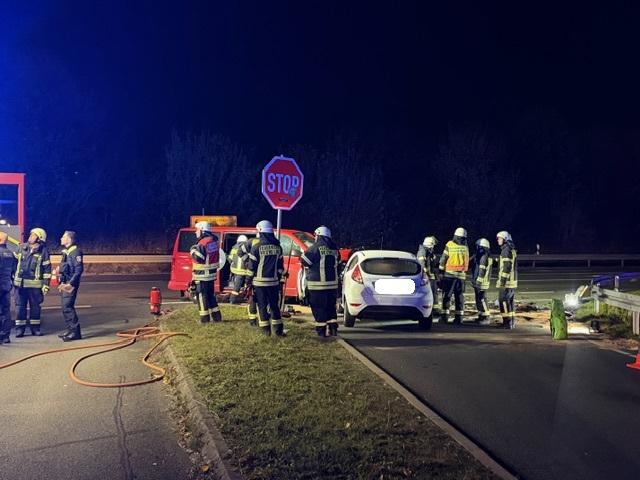 Am Feuerwehrhaus standen im Außenbereich einige Einsatzkräfte die nicht zum vorherigen Einsatz im Hallenbad Vechelde ausgerückt waren und unterhielten sich, als sie plötzlich von einem lauten Knall aus dem Gespräch gerissen wurden. Sofort war klar: Es gab einen Verkehrsunfall im Abfahrtbereich Nord der Vechelder Umgehungsstraße.