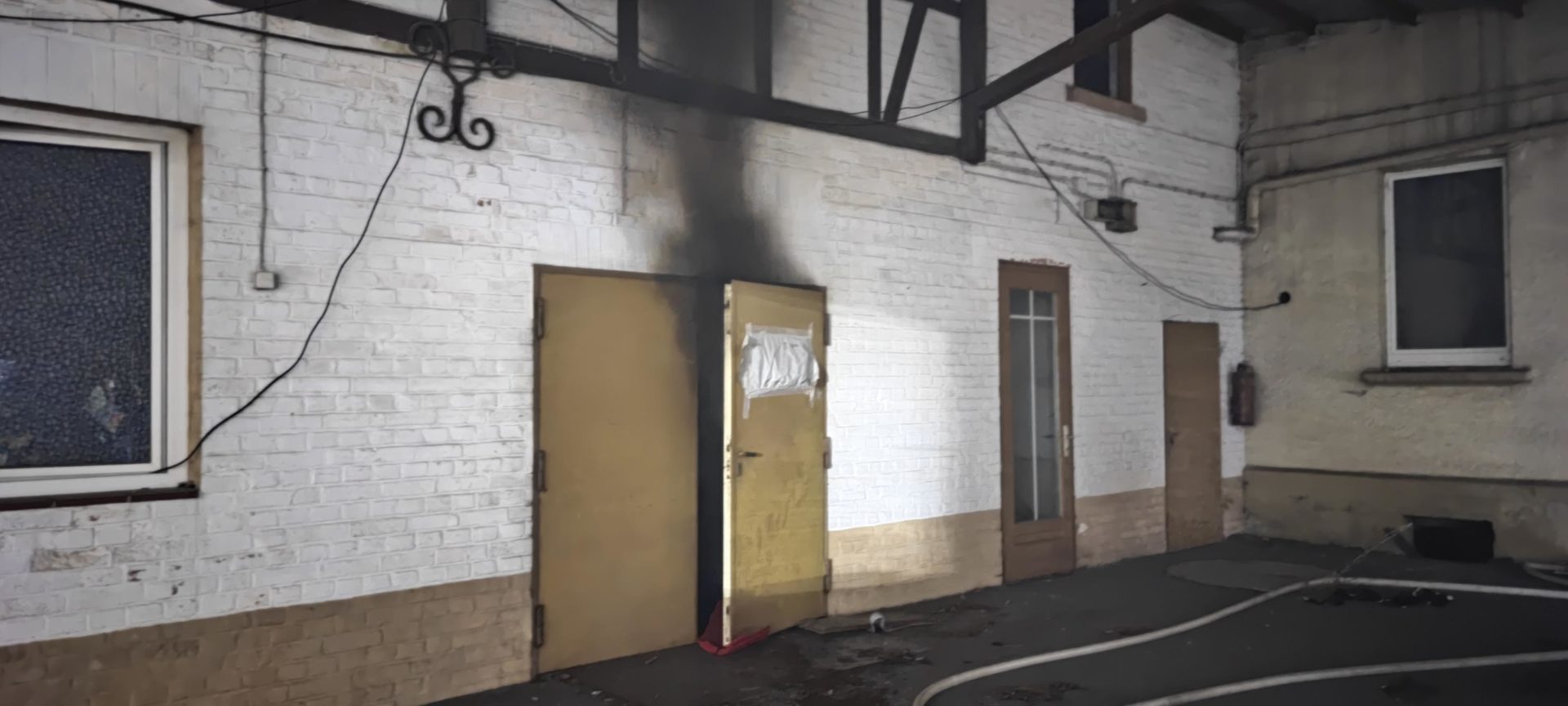 Nachdem alle Übungsdarsteller im Gebäude ihre zugewiesenen Plätze eingenommen hatten, Rauch deutlich aus dem Hauptgebäude quoll und offenes Feuer im Keller sichtbar war, wurde der Integrierten Regionalleitstelle Braunschweig/Peine/Wolfenbüttel der Startschuss übermittelt.