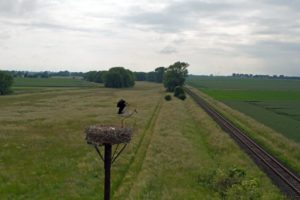 Leider war der Horst am Ortsrand von Köchingen in diesem Jahr nicht belegt. Dafür gibt es aber am östlichen Rand der Vechelder Ortslage einen weiteren Horst mit Spätbrütern. Dieser wurde nun als letzte Brutstätte am 14. Juli mit dem Drehleiterkorb angefahren um bei diesen schon recht großen Tieren die Beringung durchzuführen.