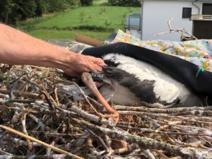 Die Feuerwehrmitglieder sind jedenfalls begeistert darüber, dass wir mit unserer Drehleiter die Beringungsaktionen unterstützen können. Es ist schon ein gewaltiger Anblick, wenn sich ein Altvogel, bei Annäherung des Drehleiterkorbes. in eine Flugbahn um seinen Horst herum begibt, getragen von der Luft unter seinen mit bis zu 2 m Spannweite ausgebreiteten Flügeln und dabei beobachtet, was Herr Fiedler mit seinen Jungen anstellt.