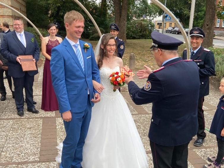 Die Mitglieder der Feuerwehr Vechelde/Wahle wüschen Hendrik und Dorina eine glückliche Ehe – zur Silberhochzeit kommen wir gern wieder.