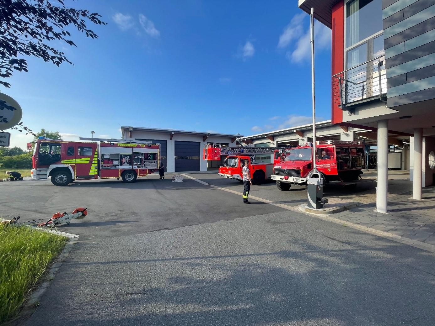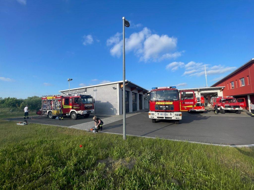 Nach ca. 90 Minuten intensiver Arbeit sind die Prüfungen und Pflegearbeiten abgeschlossen – danach wird bei einem kalten Getränk und einer heißen Bratwurst gefachsimpelt und überlegt, wie Defizite beseitigt und Abläufe – auch im Einsatz – künftig weiter optimiert werden können. Mit der Auslieferung einer Scheuer-/Saugmaschine zur Reinigung des Fahrzeughallenfußbodens wird künftig die Einhaltung von Hygienevorgaben im Feuerwehrhaus erleichtert und wenn zeitnah die Hochdruckreinigungsanlage am Waschplatz in Betrieb genommen werden kann, wird auch die Fahrzeugwäsche wesentlich vereinfacht.