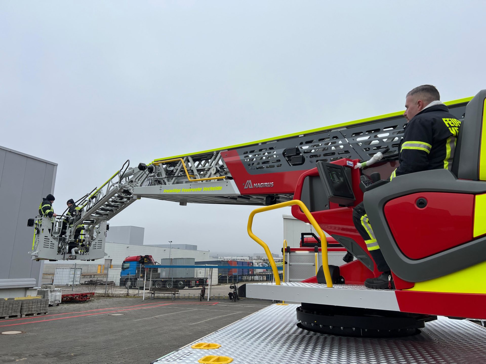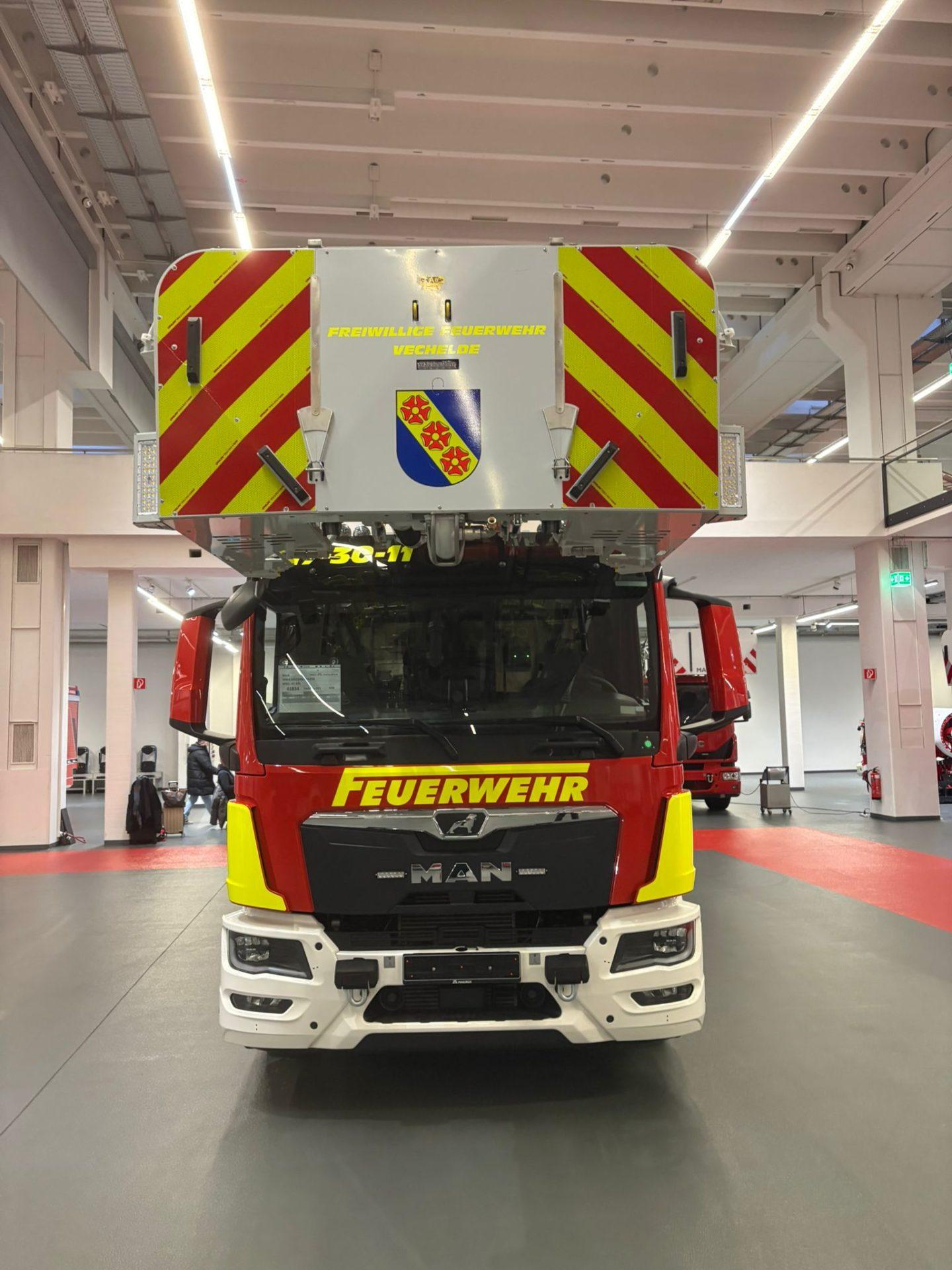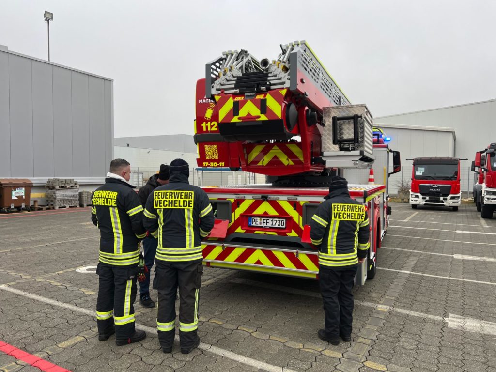 Nach erfolgreichem Abschluss der Abnahme wurde die Drehleiter am Mittwoch, den 17. Dezember 2025, zum Feuerwehrhaus Vechelde-Wahle überführt. Dieser Moment markierte nicht nur das Ende der Beschaffungsphase, sondern zugleich den Beginn eines neuen Kapitels im Einsatzdienst.