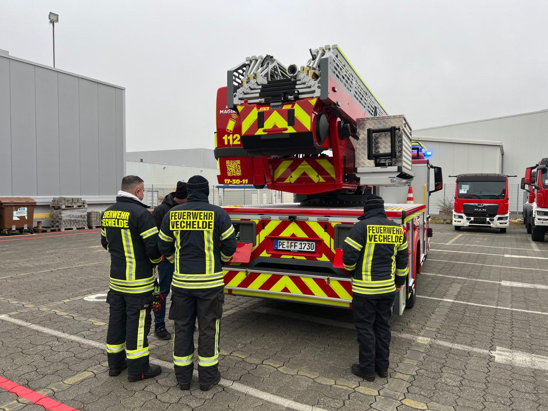Das Abnahmeteam, bestehend aus zwei Mitarbeitern der Gemeindeverwaltung, die gleichzeitig auch ehrenamtlich als aktive Einsatzkräfte im Feuerwehrschwerpunkt Vechelde-Wahle tätig sind und somit über umfangreichen Feuerwehrfachverstand verfügen, sowie zwei Einsatzkräften, die auch hauptberuflich bei der Berufsfeuerwehr Braunschweig als Führungskräfte und Drehleiterführer eingesetzt sind, überprüfte das Fahrzeug beim Hersteller intensiv. Dadurch konnte der Abnahmeprozess fachlich fundiert und bis ins Detail durchgeführt werden.