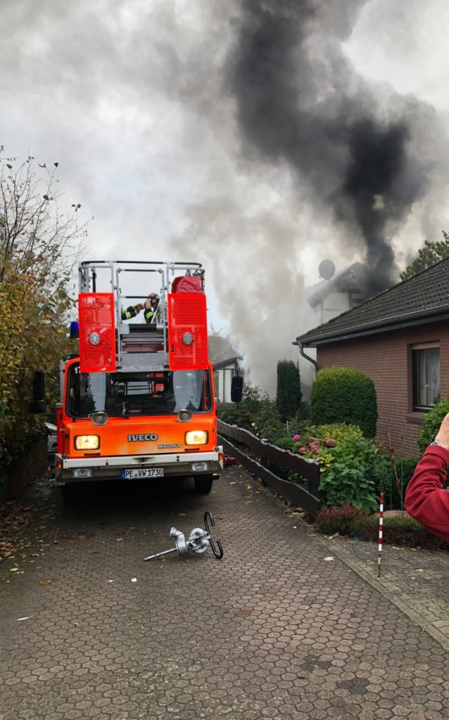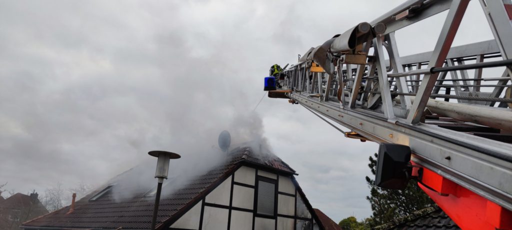 Kritisch wurde die Situation, als die Rauchentwicklung aus den Spitzboden des Wohnhauses immer intensiver wurde und die Durchzündung des Daches drohte. Deshalb hat der Einsatzleiter weitere Atemschutzgeräteträger und eine zweite Drehleiter zwecks allseitiger Abdeckung der Dachfläche von der Feuerwehr Braunschweig angefordert. Aufgrund dieser Nachforderung wurden von der IRLS die Wehren Vechelade und Köchingen alarmiert. Da diese Wehren die angeforderte Anzahl von Atemschutzgeräteträgern der Einsatzstelle nicht zuführen konnten, musste auch noch der Feuerwehrstützpunkt Denstorf/Kl. Gleidingen hinzugezogen werden.