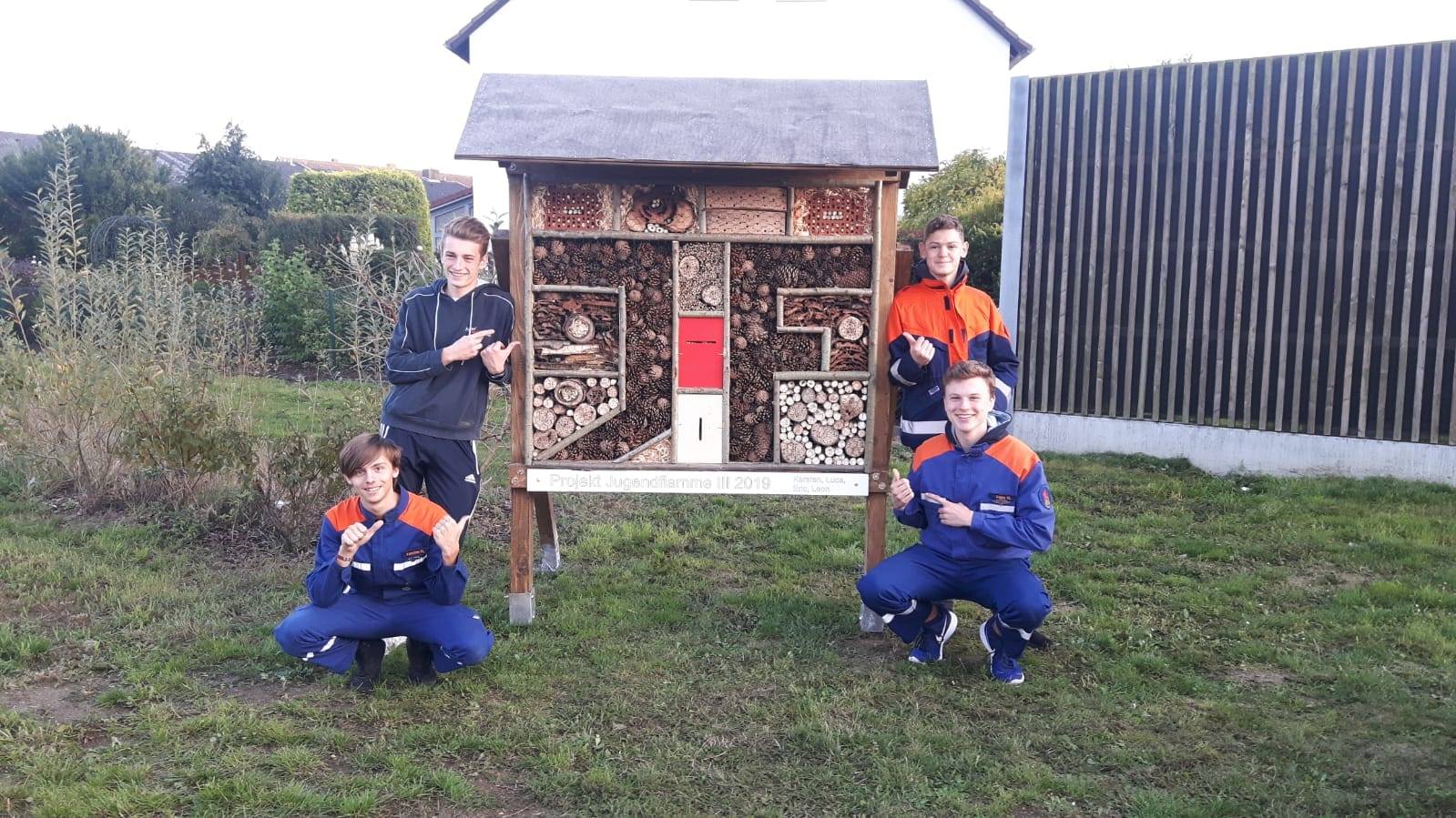 Nun können wir bei jedem Dienst im Feuerwehrhaus unser Insektenhotel bewundern.
